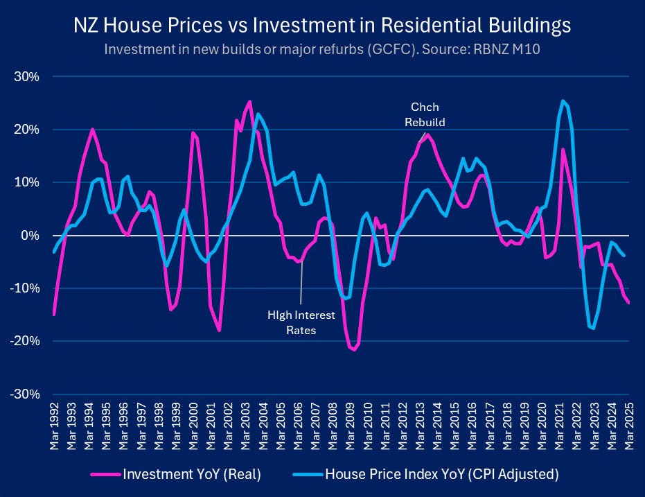 Last week’s long-foreshadowed announcements by Kāinga Ora of the cancellation of over 100 projects to build over 1,650 new homes is a major part of the negative supply shock, along with uncertainty caused by the freezing of funding and delays in planning for schools, hospitals and public transport projects. The upheavals, again, of rules around District Plans, the RMA and Local Water Done Well, set developers and planners further back on their heels, after two years of interest rate pain that has yet to abate.