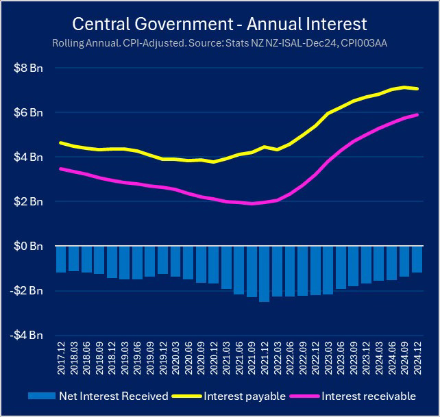 “The interest bill on government debt has soared from $3.6 billion in 2014 to $8.9 billion last year. That sum is more than annual core Crown expenses for the Police, Corrections, the Ministry of Justice, Customs and the Defence Force combined.