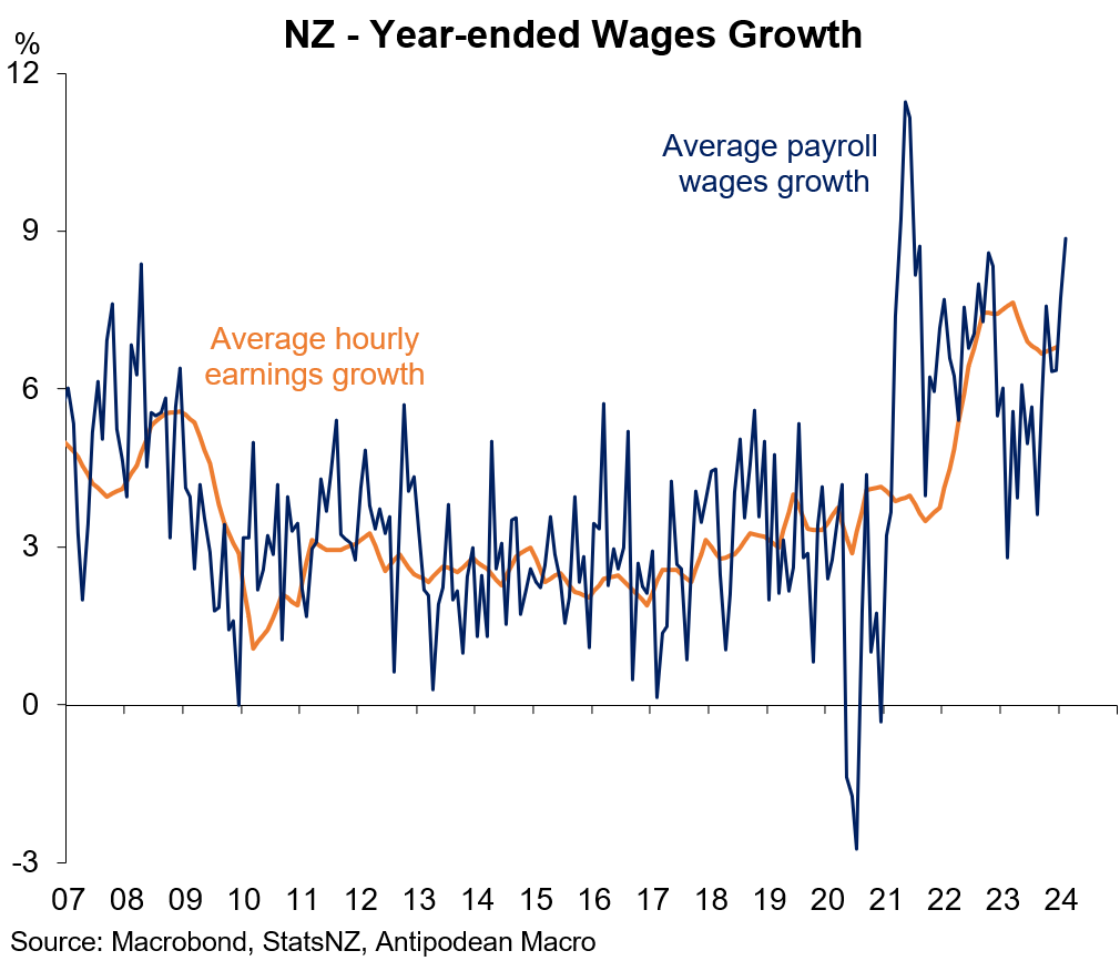 $14.8 billion - Actual gross earnings on an accruals basis from pay declared to IRD in the month of February, up 8.0% or $1.1 billion from $13.7 billion reported in February 2023, as measured by IRD’s Employer Monthly Schedule (EMS) and payday filing data sets, released by Stats NZ yesterday. Earnings per filled job in February 2024 were 6.2% higher than a year ago, Infometrics analysis of the figures showed.