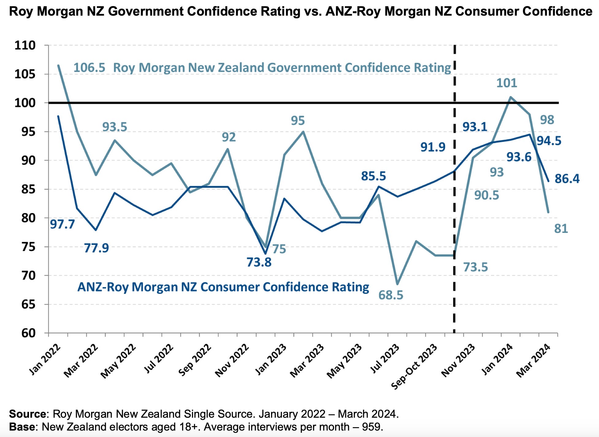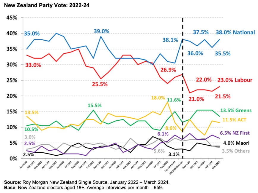 Poll results from other pollsters, including Talbot Mills (which polls for the Labour Party and corporate clients) and Curia (which polls for the Taxpayers Union), showed the beginning of a sharp fall in approval for the Government in February. Their March polls aren’t out yet.