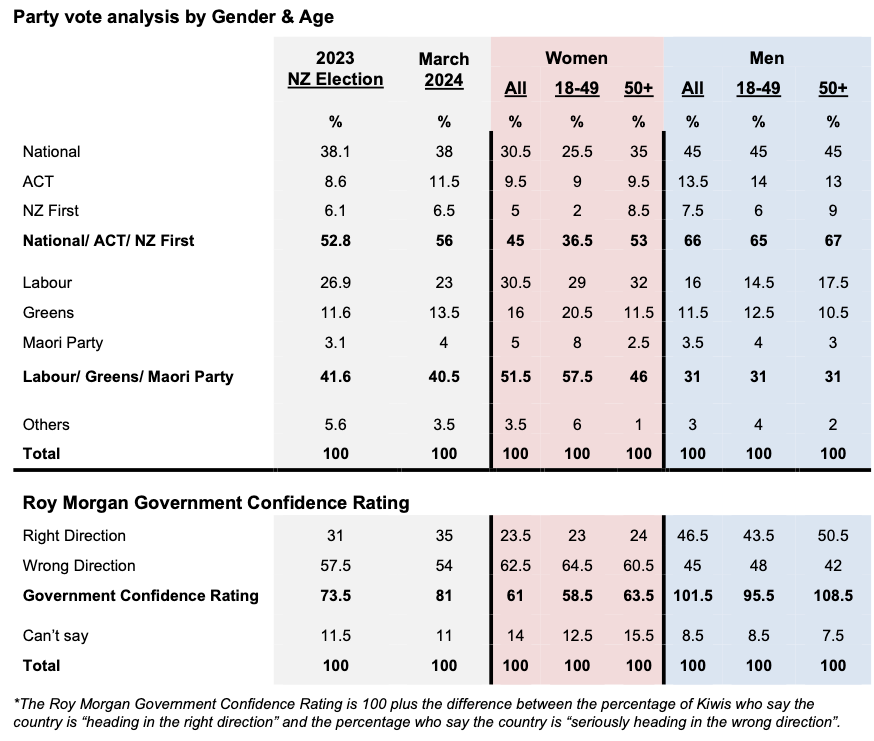 “The Government Confidence Rating amongst women plunged in March – driving the overall decline. Government Confidence for older women aged 50+ was down by a massive 24.5pts to 63.5 and for women aged 18-49 was down 18.5pts to only 58.5.