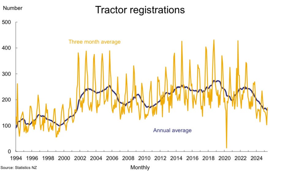 The monthly average tractor purchases over the last year to the end of April has been 160, the lowest since 2001, BNZ reports. See more in Number of the day below.