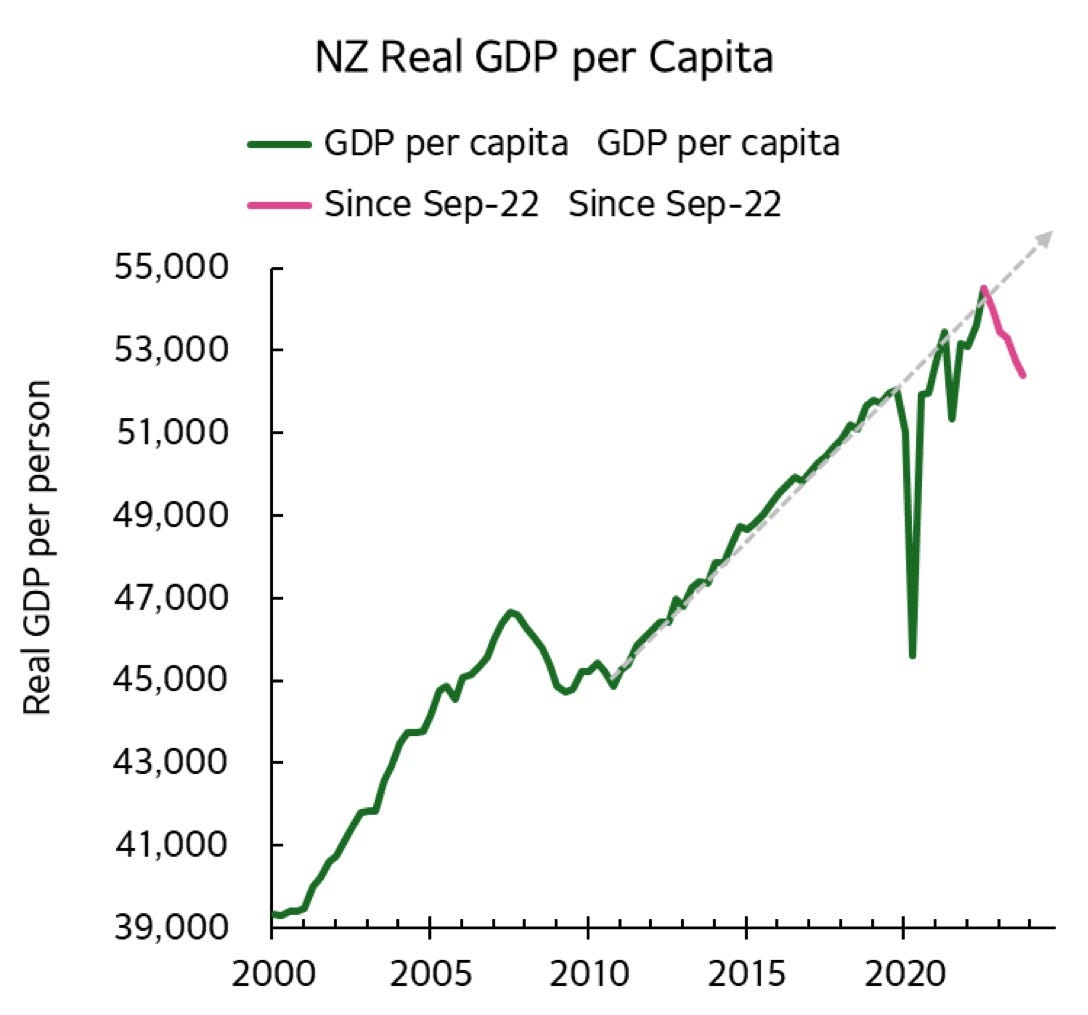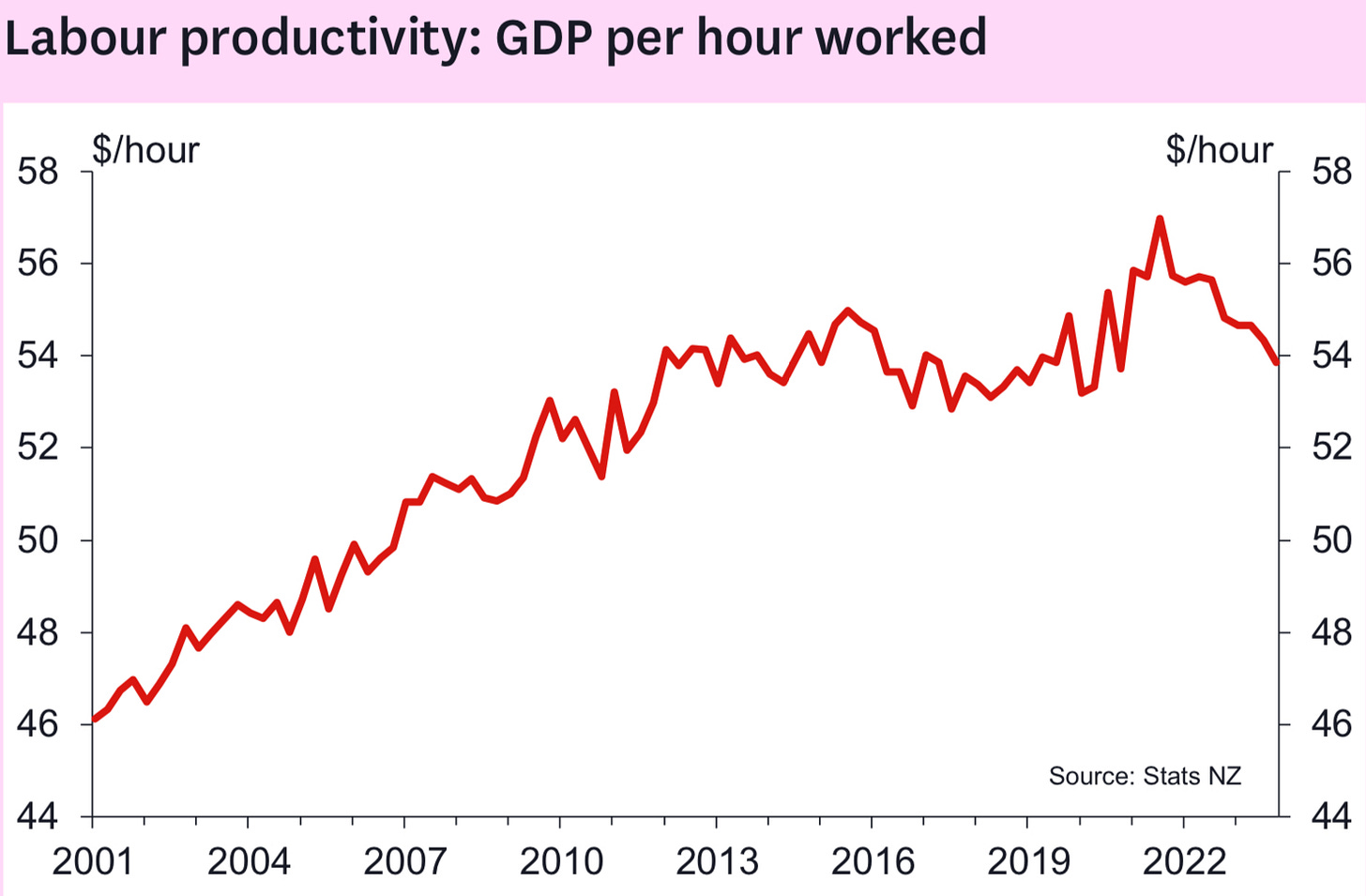 Workers have been treading water in output per hour worked for 12 years, an analysis of GDP data for 2023 showed1 yesterday, emphasising Aotearoa Inc’s lack of productivity progress since the Global Financial Crisis (See chart of the day below);