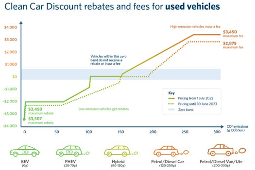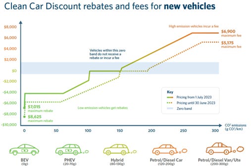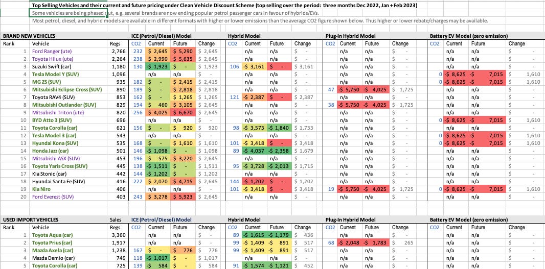 The aside above suggested what officials thought the Government would have to do if it was ‘too’ successful: completely suspend the scheme. Instead, it chose to throttle the rebates for hybrid and Tesla buyers, and ramp up the fees for gas guzzlers. That will reduce emissions from double-cab ute drivers, but also restrict emissions reductions from those who now won’t buy hybrids. It punishes Ford Ranger man, as well as Aqua-buying Uber drivers.