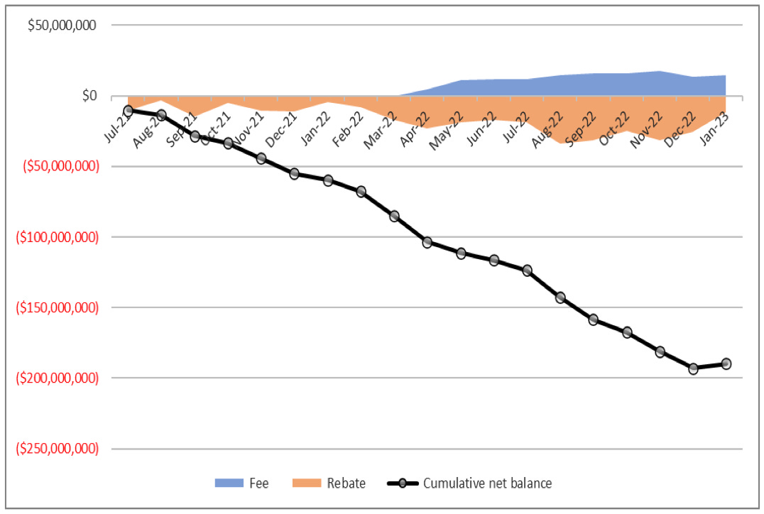 reductions in rebates and increases in fees paid by higher emitting vehicles;