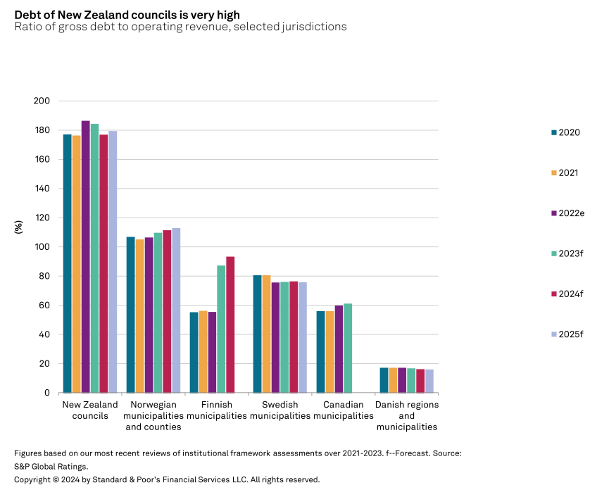 “New Zealand from a central government point of view has very, very strong fiscal outcomes. And that divide (with councils) is actually widening at the moment. New Zealand councils account for 10% of the country's debt. The sovereign accounts for 90%. But when it comes to infrastructure spending, New Zealand councils are predominantly responsible for it. In other countries, we do have revenue sharing arrangements, not just through GST.” Walker.