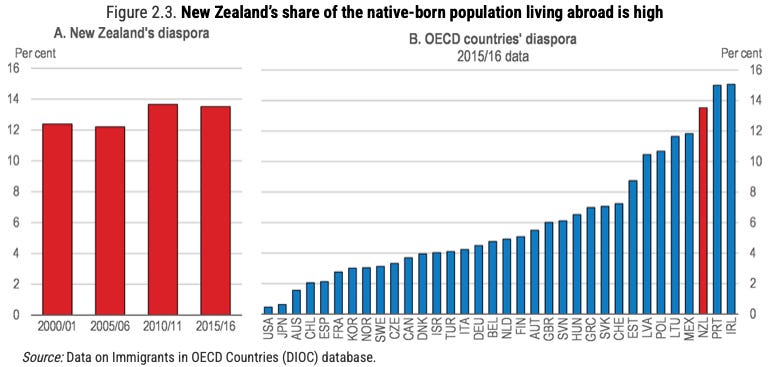 more New Zealanders give up on ever being able to start or keep a family in an affordable and secure home they own or rent, and leave to live overseas permanently with the other one million New Zealand-born diaspora — nearly 14% of the population and the third largest in the OECD as a share of our total population. Australia’s diaspora is less than 2% of its population.