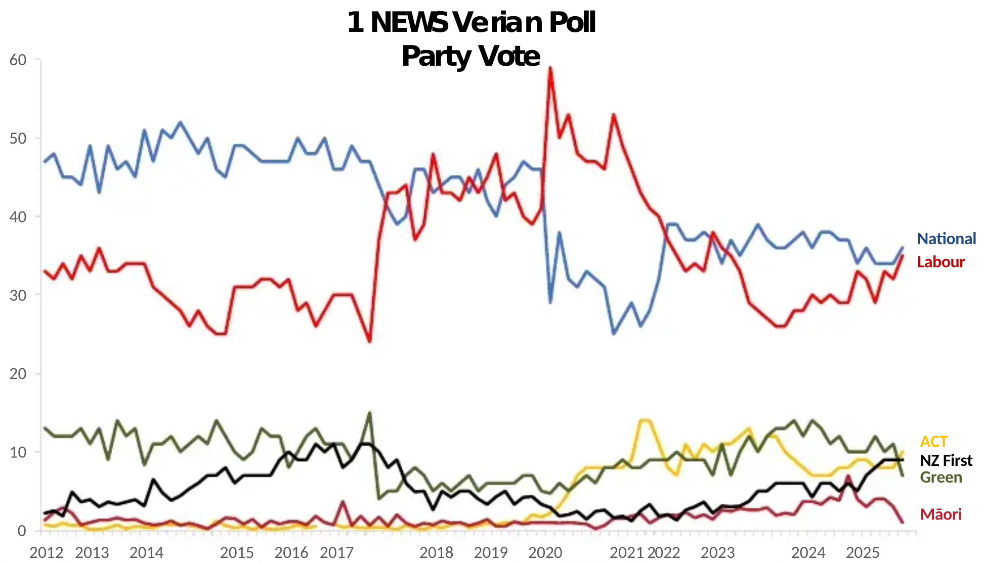 The last 1News/Verian poll of the year found support for both National and Labour rose, but support for Green and Te Pāti Māori fell by much more, leaving the governing coalition with enough MPs to govern for a second term if an election was held now.