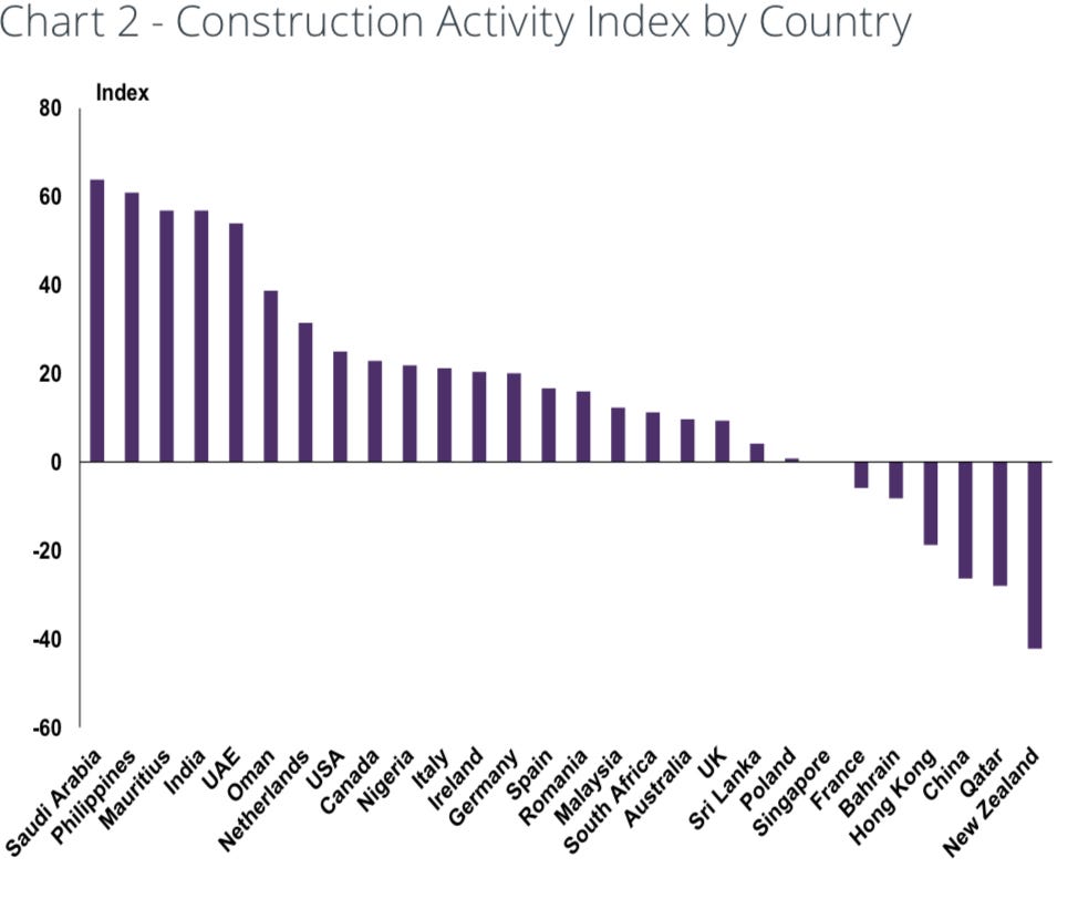“The RICS quarterly monitor paints the picture of a global construction sector in recovery. Some impediments remain in terms of build costs, finance and skills shortages, but most key markets are ticking-over with modest but positive growth driven in large part by infrastructure projects.