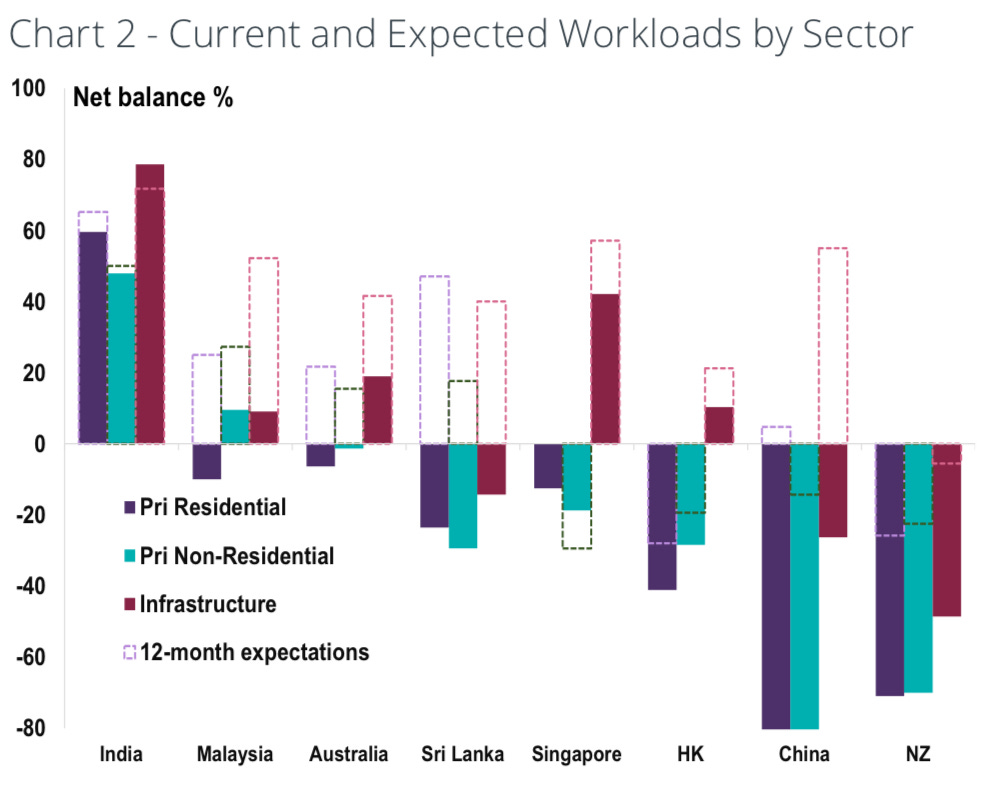“New Zealand stands out for remaining decidedly downbeat. Expected workloads over the coming twelve months are the lowest in the world. Alongside China, they have been the lowest in the world over the past three months. It should come as no surprise therefore that headcounts are down over the past quarter and anticipated to fall further.