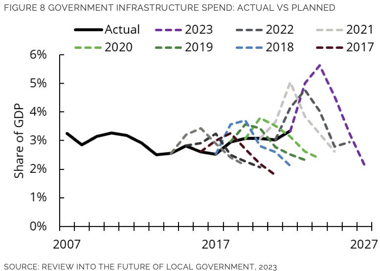 Plus the resulting lower-than-forecast and falling infrastructure investment…