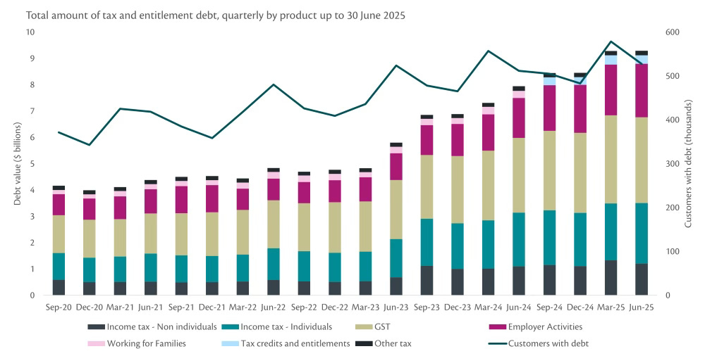 IRD’s data shows a rise in tax debt to nearly $9 billion by the middle of last year from under $4 billion in 2020.