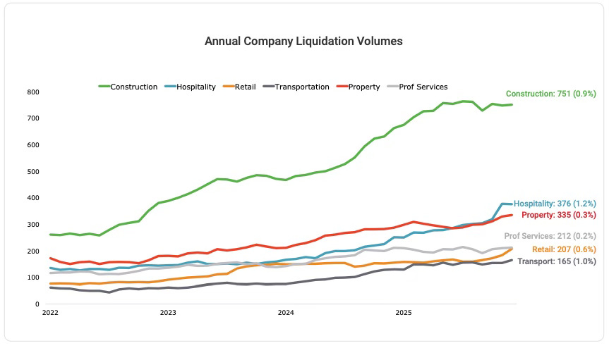 “Rising liquidations underscore ongoing financial strain across parts of the economy, as well as the IR’s ongoing crackdown on outstanding debts. Company failures are now at their highest level since 2010, with hospitality, retail trade, transport and construction seeing significant increases.” Centrix Chief Operating Officer Monika Lacey in Centrix’s January Credit Indicator Report