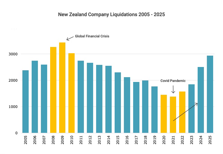 The Sidebar: The liquidations are linked in part to the IRD’s crackdown on overdue tax debts and Covid loans. Four years of falling-to-flat house prices have also proven the death knell for many ‘zombie’ small businesses dependent on home equity withdrawals to get through the rough years.
