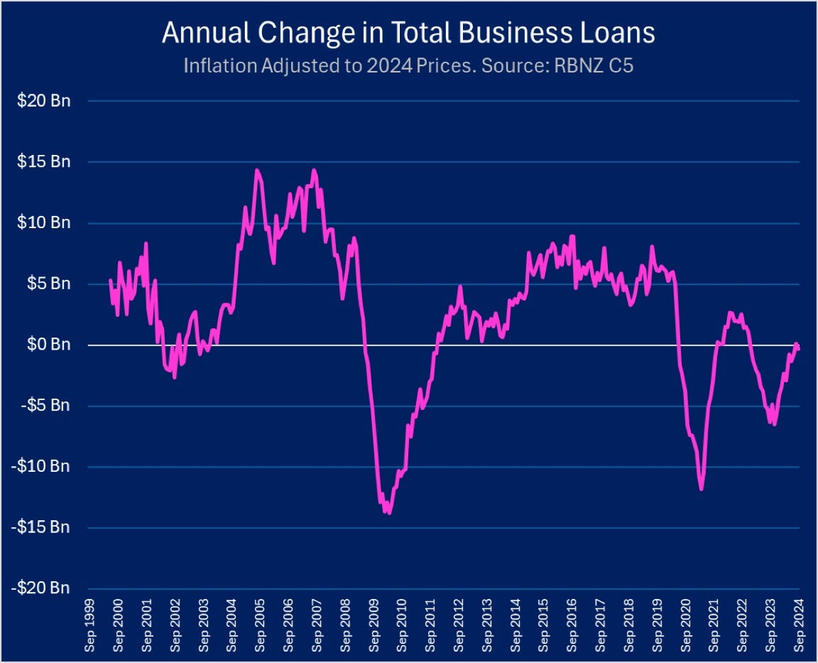 Chart of the day: New Zealand’s businesses have basically stopped borrowing to invest in new R&D and technology because spare savings are increasingly going into residential land ‘investment.’