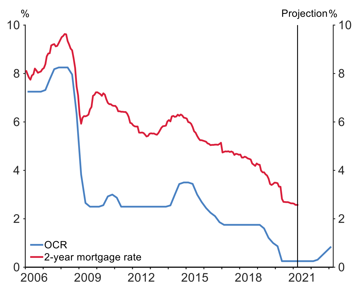 Earlier, the bank released projections it would start increasing the Official Cash Rate in mid-2022 and raise it to around 1.75% over the following two years. That would make NZ’s central bank one of the first in the developed world to hike rates since the Covid crisis.