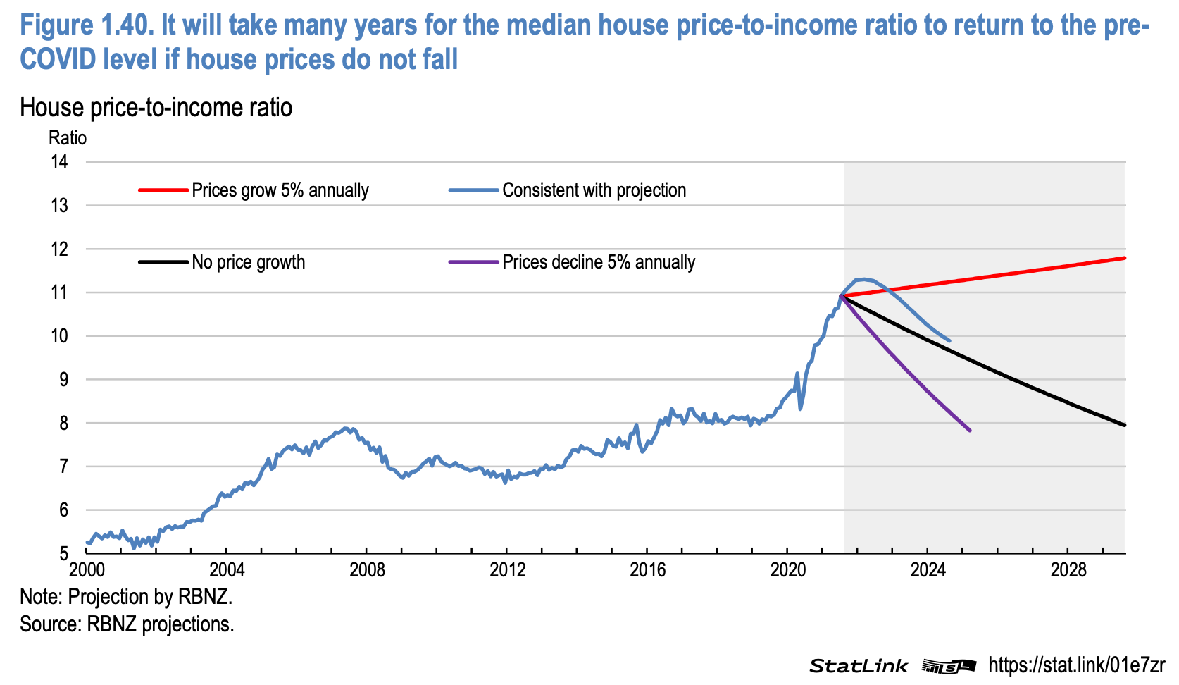 This from the OECD’s survey of NZ published this week is its riposte to the magical thinking that Labour and National have adopted that housing affordability will solve itself with moderate or no house price inflation.