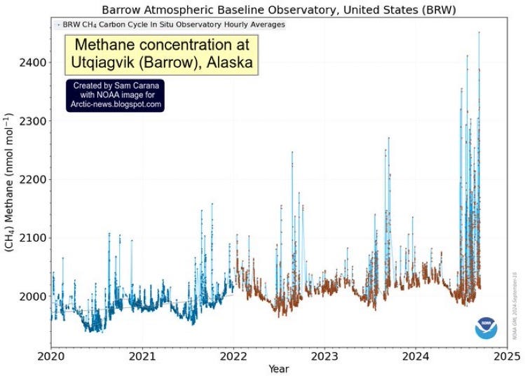 In chart of the day, methane levels have spiked in the Arctic.