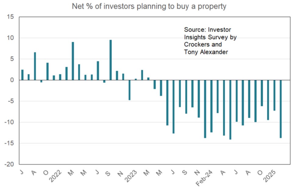 One reason for the lack of fresh credit-fuelled demand is rental property investor demand is sliding as they’re wary of prices falling again and many are hitting their Debt To Income (DTI) multiple limits for new borrowing.