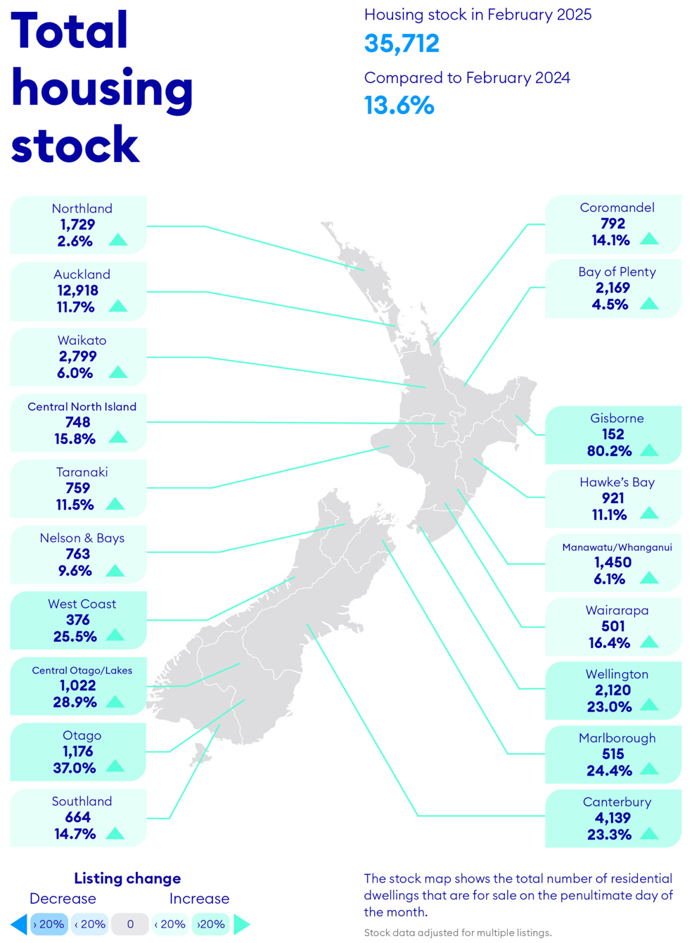 The total stock of listings was 35,712 in February, up 10.2% from January and the highest level since 2015.