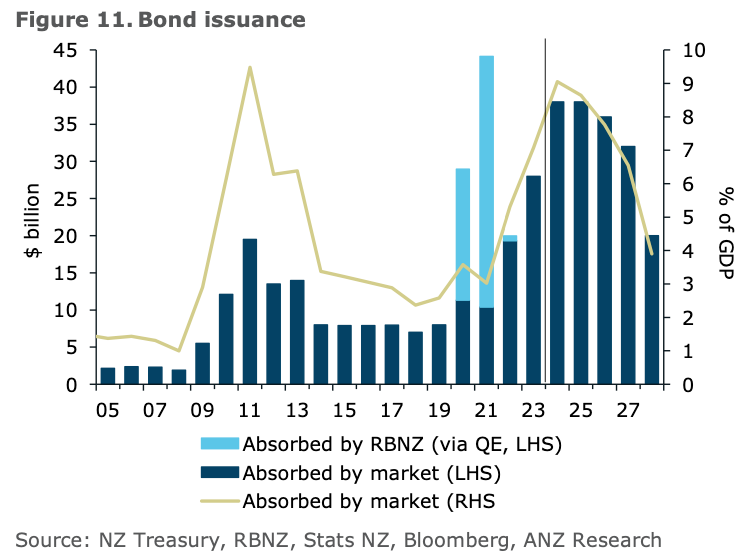 Here’s is a table and chart via ANZ showing the bond issuance over the longer term and in the short term: