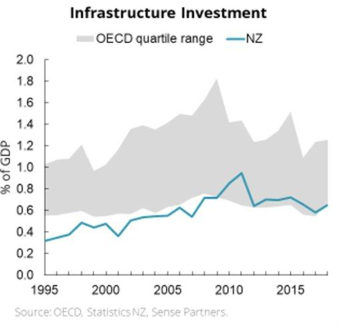 I made the point in the Spinoff podcast that our failure to properly forecast population growth because of decisions to ramp up temporary migration has meant our infrastructure investment has been much lower than expected. It helped create a situation where both central Government and Councils reduced investment levels over the last 30 years to allow lower Government debt (which produces the politically popular combination of low interest rates low and high house prices) and lower taxes.